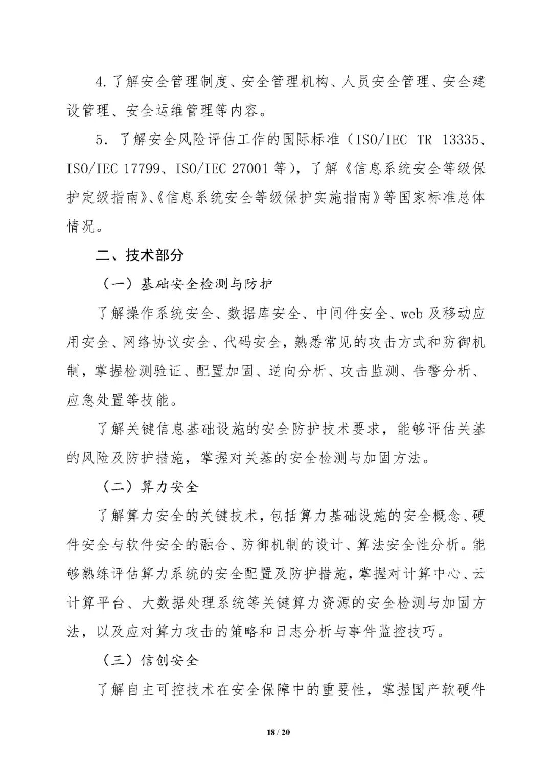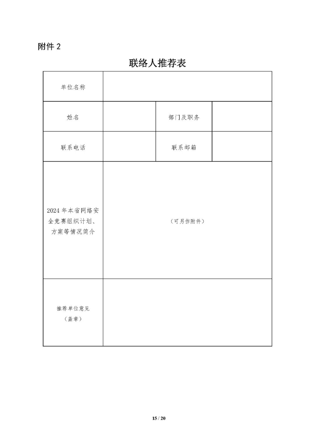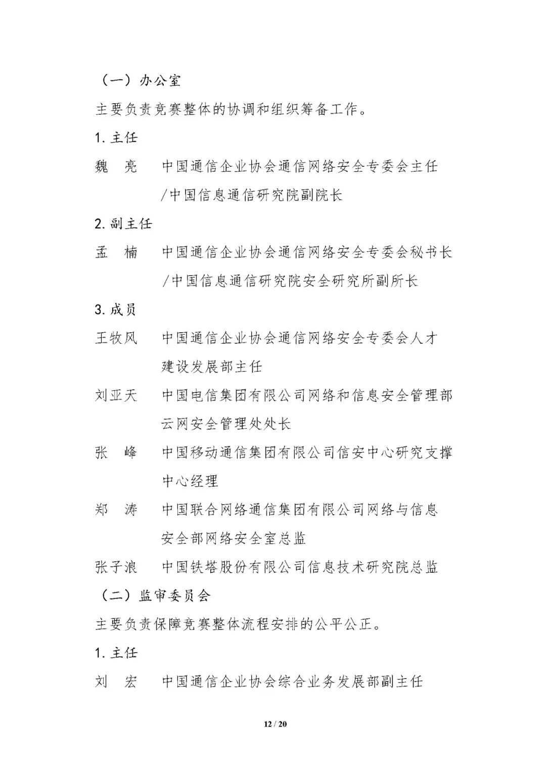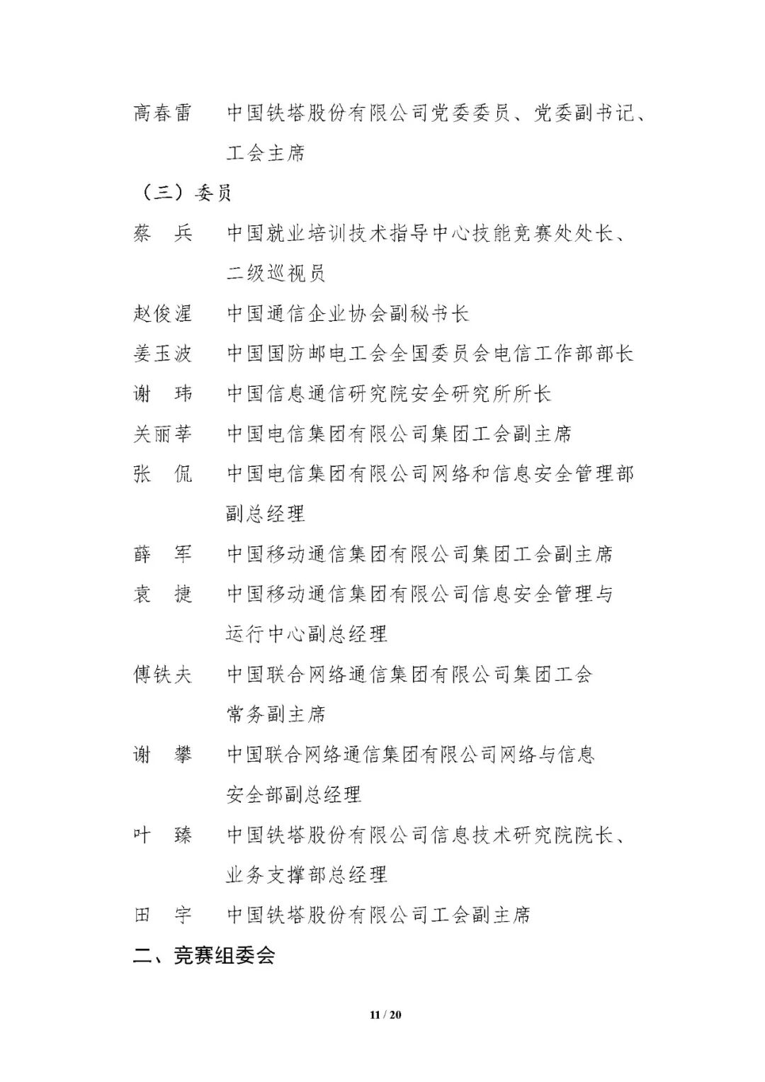 为全面贯彻落实党的二十大精神和习近平总书记关于技能人才工作和职业技能竞赛工作的重要指示批示精神,大力弘扬劳模精神、劳动精神、工匠精神,有效促进基础电信运营企业强化自身网络安全人才培养,加快推动电信和互联网行业网络安全高技能人才队伍发展壮大,全面加强网络安全保障体系和能力建设,根据《人力资源社会保障部关于组织开展2024年全国行业职业技能竞赛的通知》(人社部函〔2024〕41号)和《关于举办2024年全国行业职业技能竞赛——第五届全国电信和互联网行业职业技能竞赛的通知》(通企〔2024〕168号)等相关要求,中国通信企业协会、中国就业培训技术指导中心、中国国防邮电工会全国委员会决定联合举办“2024年全国行业职业技能竞赛——第五届全国电信和互联网行业职业技能竞赛(网络与信息安全管理员—算力网络与信创系统方向)暨2024年(第十三届)信息通信网络安全管理员职业技能竞赛”(以下简称“竞赛”),由中国通信企业协会通信网络安全专业委员会负责承办。现将有关事项通知如下:本次竞赛是经人力资源和社会保障部批准的国家二类职业技能竞赛,为保证竞赛活动组织有序,大赛方式公平公正,竞赛专门成立专家指导委员会和竞赛组委会(名单详见附件1)。竞赛专家指导委员会主要负责指导统筹和部署推动赛事各项重点工作,加强对竞赛活动的宏观性、战略性指导,由竞赛主办单位与基础电信运营企业等单位的相关领导、专家组成。竞赛组委会是竞赛最高领导决策机构,主要负责统筹协调竞赛各项工作推进实施与组织管理工作。竞赛组委会下设办公室、监审委员会、技术工作委员会,负责具体落实赛事组织实施、研究审定竞赛方案、协调决策竞赛重大事项、指导监督竞赛开展全过程、发布竞赛结果等相关事宜。竞赛工种(赛项):4-04-04-02网络与信息安全管理员(算力网络与信创系统方向)(一)职工组:从事网络与信息安全管理等相关专业或职业的在职职工,各类高等院校和职业院校(含技工院校、高职高专、中职等,下同)从事网络与信息安全管理等相关专业工作的在职教师。(二)学生组:各类高等院校和职业院校全日制在籍学生。(一)竞赛内容:以理论考试和技能操作相结合,综合考查参赛选手的网络安全理论基础和实践技能。重点考查参赛选手在网络安全管理、网络安全技术、系统安全技术、应用安全技术等领域的理论基础知识,以及网络安全相关法律法规等关键内容。根据电信和互联网行业实际网络业务情况,并结合近期常见的网络安全问题,围绕算力网络、信创系统、关键信息基础设施等重点应用方向,构建基础电信运营企业典型业务场景和5G网络、云计算、大数据、人工智能等新技术方向电信各业务场景等竞赛环境,涉及典型攻击防护、威胁分析、安全加固、应急响应等方面,综合考查参赛选手在各项安全技能掌握水平,助力筑牢电信和互联网网络安全防护屏障。(二)竞赛命题标准:由理论考试和技能操作两部分组成,按照《网络与信息安全管理员国家职业标准(2020年版)》高级工以上技能要求实施,总成绩中理论考试成绩占20%、实际操作成绩占80%。竞赛将积极吸收与借鉴国内外职业技能大赛命题方法和考核内容,适当增加相关新知识、新技术、新技能内容,同时结合企业职业岗位对人才培养需求,并参照相关国家职业标准制定。(见附件3《竞赛大纲》)1.省级选拔赛:以各省、直辖市、自治区为单位组织省级选拔赛,由省通信管理局会同其他相关部门及信息通信行业协会立足区域优势,科学制定竞赛工作方案,加强竞赛活动组织和选拔力度,选拔范围应全面覆盖本省份的基础电信运营企业、网络安全企业、互联网企业、研究机构和相关高等院校、职业院校等相关单位。在2024年实际组织开展省级选拔赛的省份可推荐2名优秀个人选手和1支优秀参赛队伍分别参加全国总决赛的个人赛和团队赛。2.基础电信运营企业集团选拔赛:由基础电信运营企业集团公司(主要为中国电信、中国移动、中国联通、中国广电、中国铁塔)自行组织开展集团选拔赛,选拔范围应全面覆盖所属各省公司、地市公司和专业公司。各基础电信运营企业集团根据选拔赛成绩择优推荐相关优秀个人选手和优秀参赛队伍分别参加全国总决赛的个人赛和团队赛。(二)全国总决赛阶段:2024年11月30日前完成由竞赛组委会统一组织全国总决赛。比赛形式包含安全卫士个人赛、安全卫士团队赛,其中:安全卫士个人赛:通过理论解题和夺旗赛模式,在考查参赛选手在网络安全管理、网络安全技术、系统安全技术、应用安全技术等领域的理论和实践技能基础上,设定算力、信创、关基等领域 信息系统及安全事件仿真场景,考察选手面向实战的情报技术、渗透技术、持久化机制技术、横向移动技术、命令控制、威胁检测,以及多层监测、检测、防御、溯源和应急处置等综合技战能力。安全卫士团队赛:团队赛分为网络攻防对抗赛、应急响应挑战赛和漏洞挖掘挑战赛三个赛道。各赛道采用独立计分方式,围绕算力网络、信创系统、关键信息基础设施、开源软件等重点领域,构建网络攻防场景、应急处置场景和漏洞挖掘场景。网络攻防对抗赛参考典型安全事件及技战术,采用互攻互防、动态防御和安全加固的形式开展;应急响应挑战赛基于典型事件、活跃APT组织攻